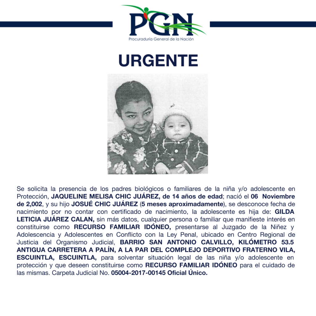 JAQUELINE MELISA CHIC JUÁREZ, y su hijo JOSUÉ CHIC JUÁREZ (5 meses aproximadamente) PGN Comunicación Social hace 7 años JAQUELINE MELISA CHIC JUÁREZ, y su hijo JOSUÉ CHIC JUÁREZ (5 meses aproximadamente) Por: Comunicación Social Comparte en redes sociales