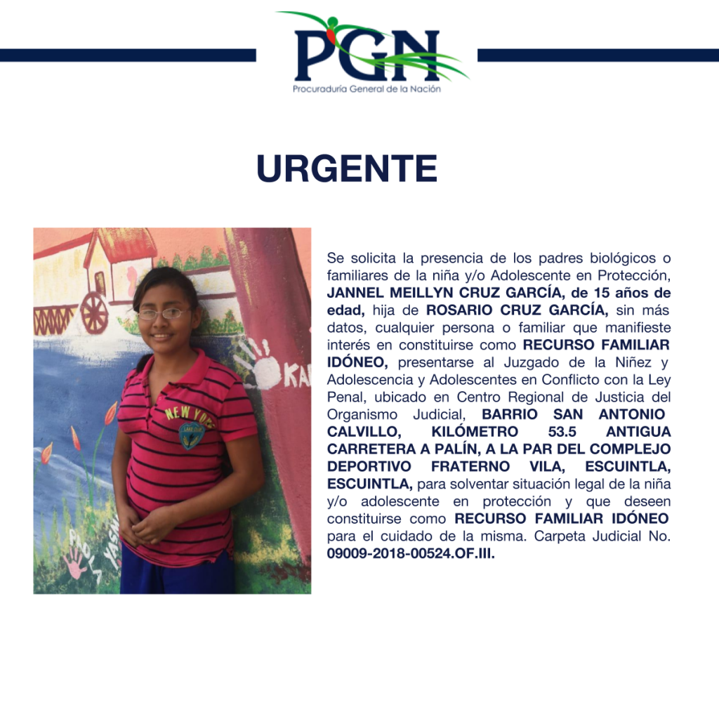 JANNEL MEILLYN CRUZ GARCÍA PGN Comunicación Social hace 7 años JANNEL MEILLYN CRUZ GARCÍA Por: Comunicación Social Comparte en redes sociales