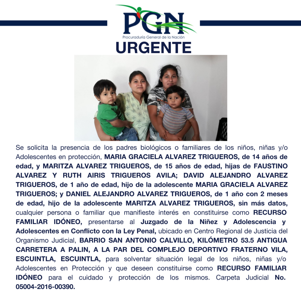 MARIA GRACIELA ALVAREZ TRIGUEROS, MARITZA ALVAREZ TRIGUEROS, FAUSTINO ALVAREZ, RUTH AIRIS TRIGUEROS AVILA, DAVID ALEJANDRO ALVAREZ TRIGUEROS, DE 1 AÑO DE EDAD, HIJO DE LA ADOLESCENTE MARIA GRACIELA ALVAREZ TRIGUEROS; Y DANIEL ALEJANDRO ALVAREZ TRIGUEROS