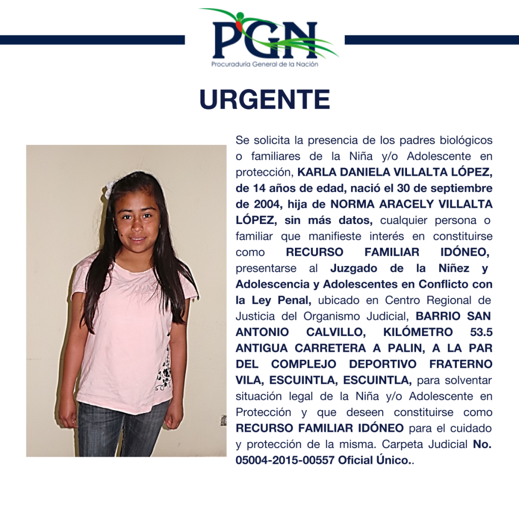 KARLA DANIELA VILLALTA LÓPEZ PGN Comunicación Social hace 7 años KARLA DANIELA VILLALTA LÓPEZ Por: Comunicación Social Comparte en redes sociales