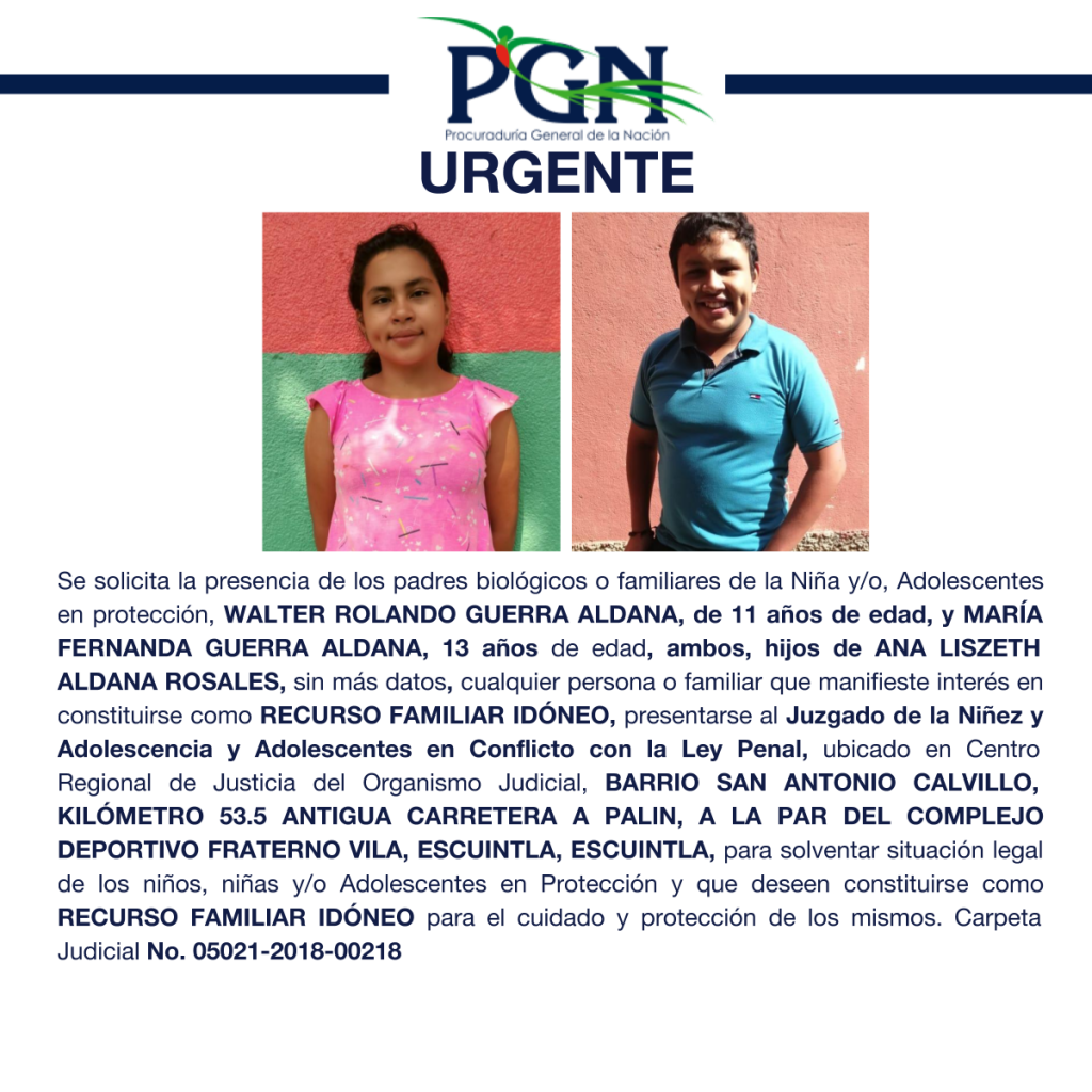 WALTER ROLANDO GUERRA ALDANA, ARÍA FERNANDA GUERRA ALDANA PGN Comunicación Social hace 7 años WALTER ROLANDO GUERRA ALDANA, ARÍA FERNANDA GUERRA ALDANA Por: Comunicación Social Comparte en redes sociales