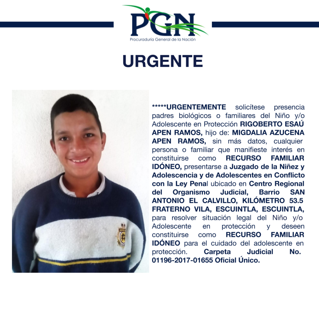 RIGOBERTO ESAÚ APEN RAMOS PGN Comunicación Social hace 6 años Rigoberto esaú apen ramos Por: Comunicación Social Comparte en redes sociales