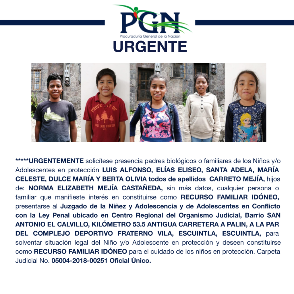 LUIS ALFONSO, ELÍAS ELISEO, SANTA ADELA, MARÍA CELESTE, DULCE MARÍA Y BERTA OLIVIA todos de apellidos CARRETO MEJÍA PGN Comunicación Social hace 6 años LUIS ALFONSO, ELÍAS ELISEO, SANTA ADELA, MARÍA CELESTE, DULCE MARÍA Y BERTA OLIVIA todos de apellidos CARRETO MEJÍA Por: Comunicación Social Comparte en redes sociales