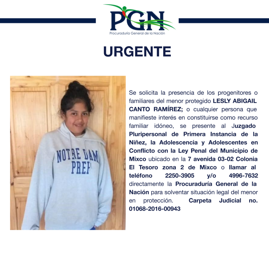 LESLY ABIGAIL CANTO RAMÍREZ PGN Comunicación Social hace 6 años LESLY ABIGAIL CANTO RAMÍREZ Por: Comunicación Social Comparte en redes sociales