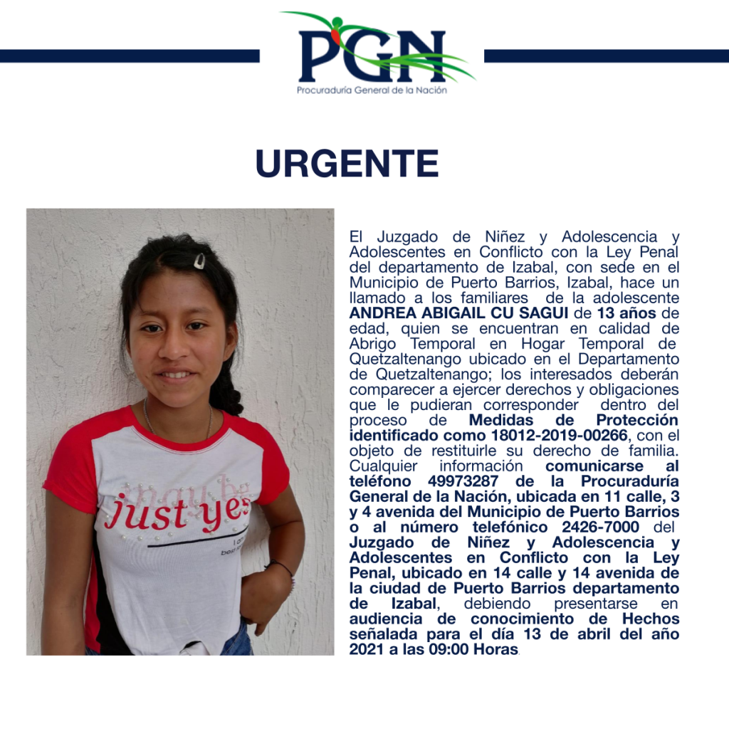 ANDREA ABIGAIL CU SAGUI PGN Comunicación Social hace 5 años ANDREA ABIGAIL CU SAGUI Por: Comunicación Social Comparte en redes sociales