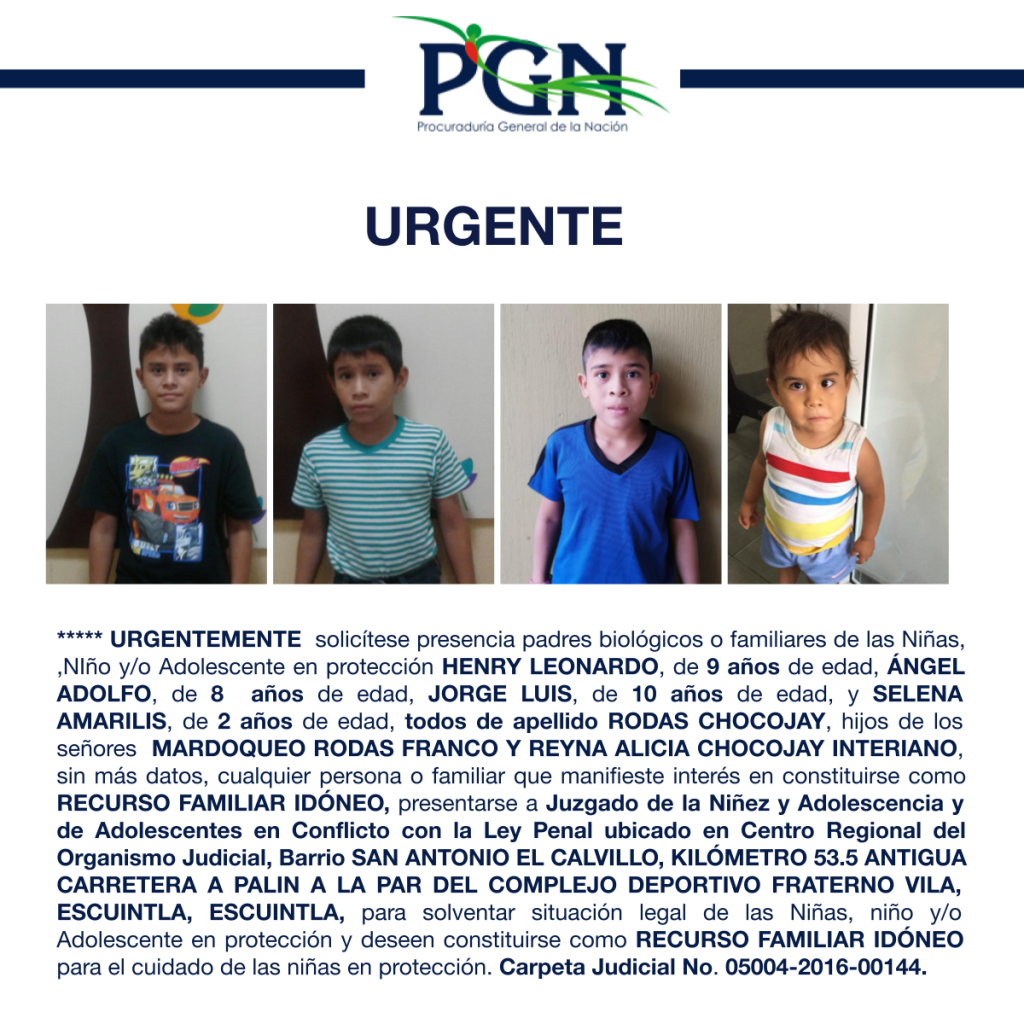 HENRY LEONARDO, ÁNGEL ADOLFO, JORGE LUIS, SELENA AMARILIS todos de apellido RODAS CHOCOJAY PGN Comunicación Social hace 5 años HENRY LEONARDO, ÁNGEL ADOLFO, JORGE LUIS, SELENA AMARILIS todos de apellido RODAS CHOCOJAY Por: Comunicación Social Comparte en redes sociales