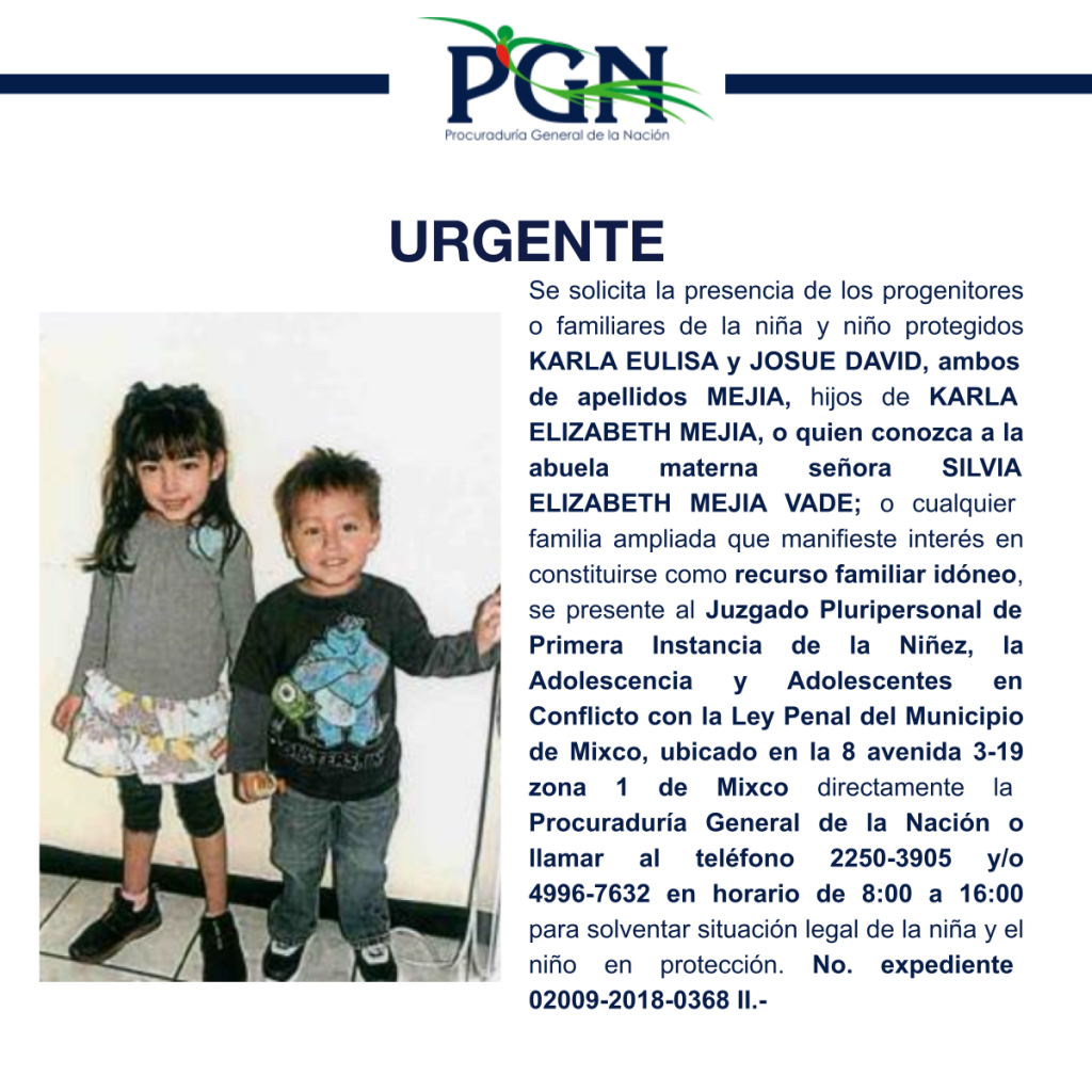 KARLA EULISA y JOSUE DAVID, ambos de apellidos MEJIA PGN Comunicación Social hace 5 años KARLA EULISA y JOSUE DAVID, ambos de apellidos MEJIA Por: Comunicación Social Comparte en redes sociales