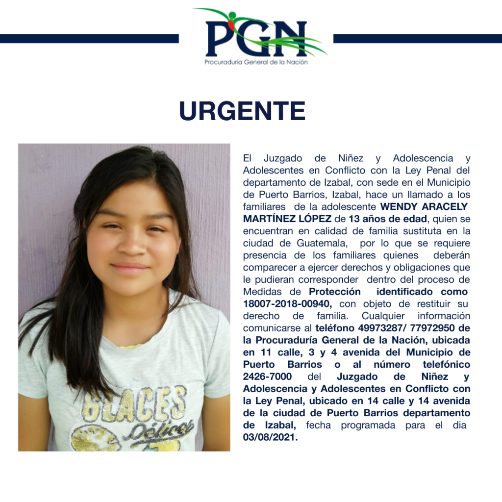 WENDY ARACELY MARTÍNEZ LÓPEZ PGN Comunicación Social hace 5 años WENDY ARACELY MARTÍNEZ LÓPEZ Por: Comunicación Social Comparte en redes sociales