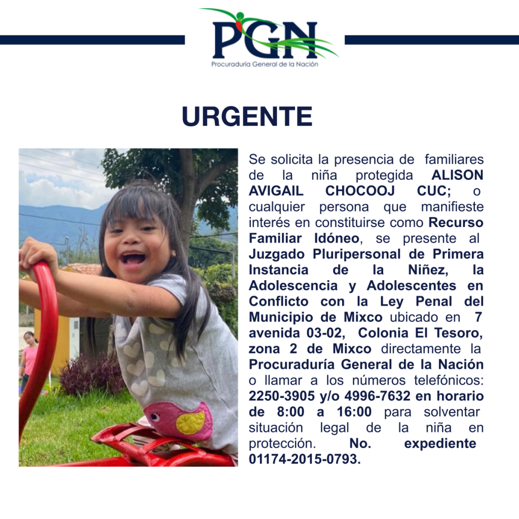 ALISON AVIGAIL CHOCOOJ CUC PGN Comunicación Social hace 5 años ALISON AVIGAIL CHOCOOJ CUC Por: Comunicación Social Comparte en redes sociales