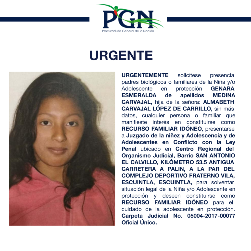 GENARA ESMERALDA de apellidos MEDINA CARVAJAL PGN Comunicación Social hace 4 años GENARA ESMERALDA de apellidos MEDINA CARVAJAL Por: Comunicación Social Comparte en redes sociales