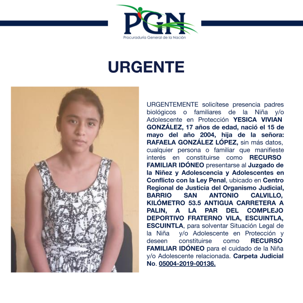 YESICA VIVIAN GONZÁLEZ, PGN Comunicación Social hace 4 años YESICA VIVIAN GONZÁLEZ Por: Comunicación Social Comparte en redes sociales