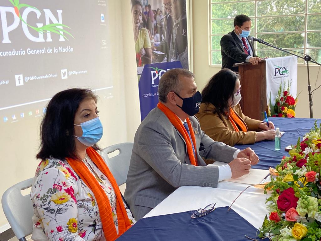 Durante su discurso, el Procurador General de la Nación subrayó la importancia de la inauguración de las nuevas instalaciones que se ubican en el edificio de la Alerta Alba-Keneth, zona 8, y agradeció a ONU Mujeres la donación del mobiliario y el equipo que hoy resguardan los expedientes y la documentación de gran valor que a diario generan las diferentes abogacías, unidades, direcciones y jefaturas que conforman la PGN.