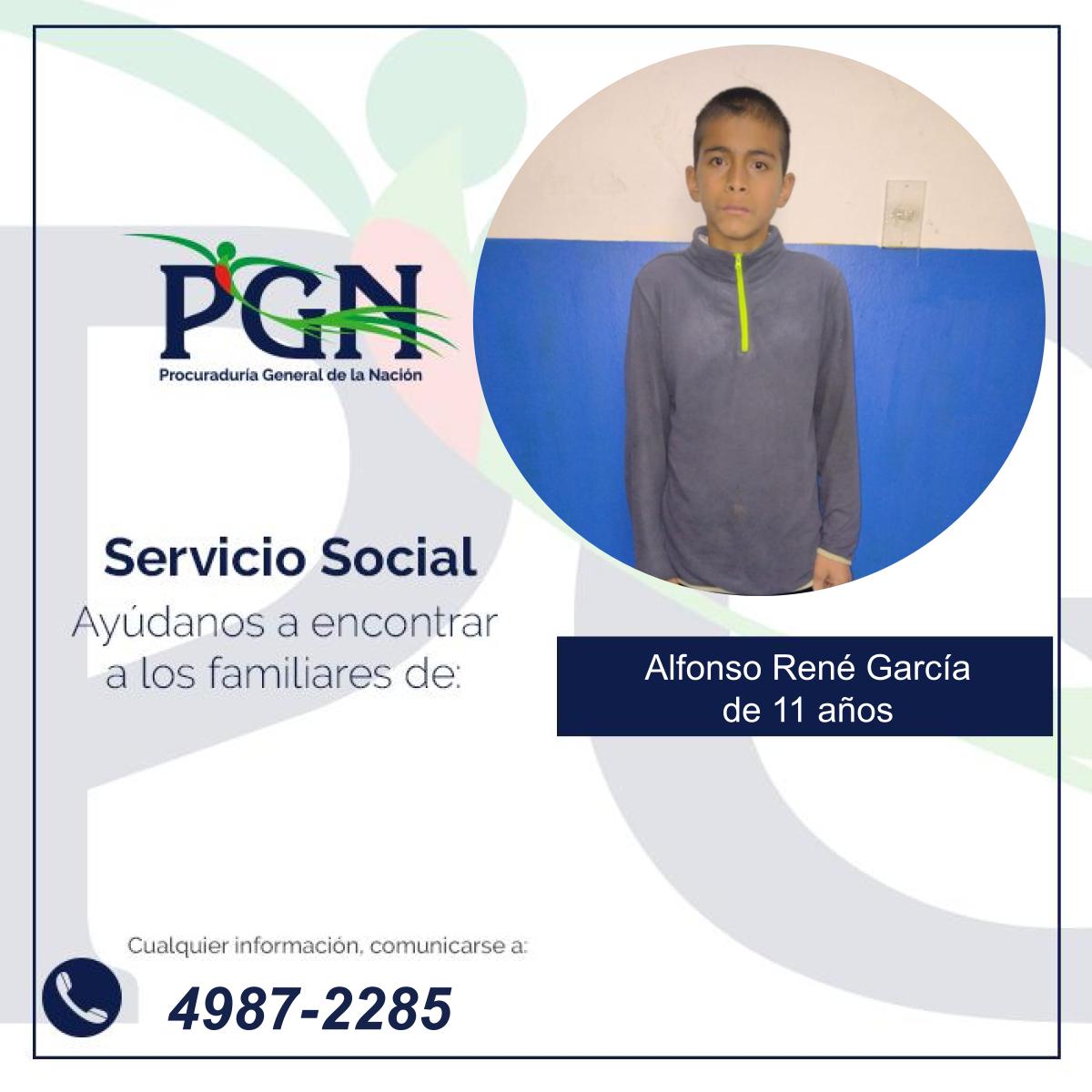 Ayúdenos a localizar a los familiares de Alfonso René García