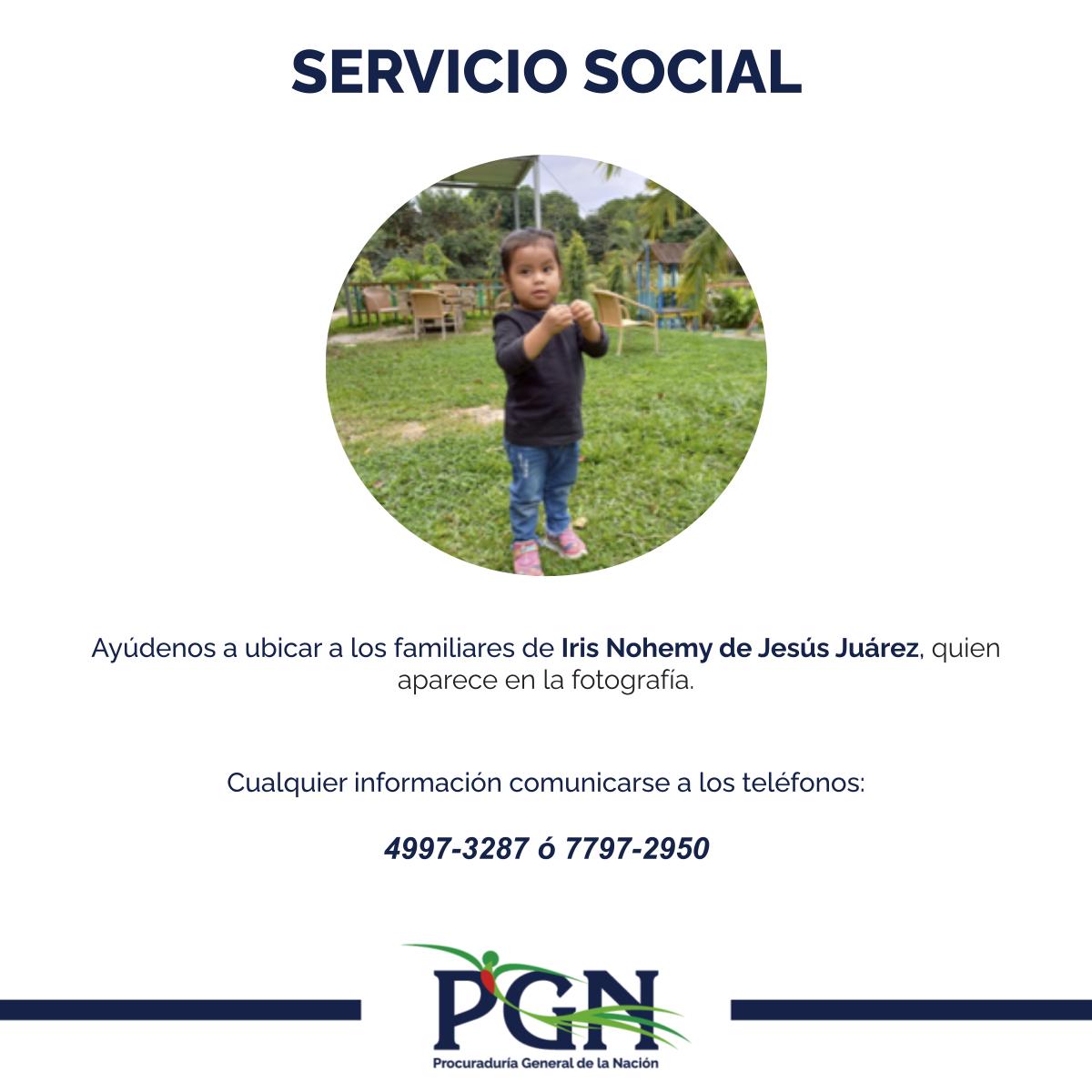 Ayúdenos a localizar a los familiares de Iris Nohemy de Jesús Juárez