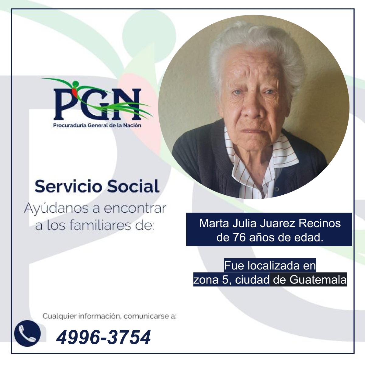 Ayúdenos a localizar a los familiares de Marta Julia Juarez Recinos