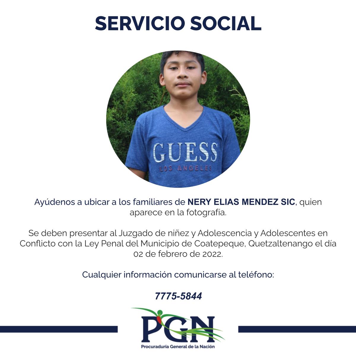 Ayúdenos a localizar a los familiares de NERY ELIAS MENDEZ SIC