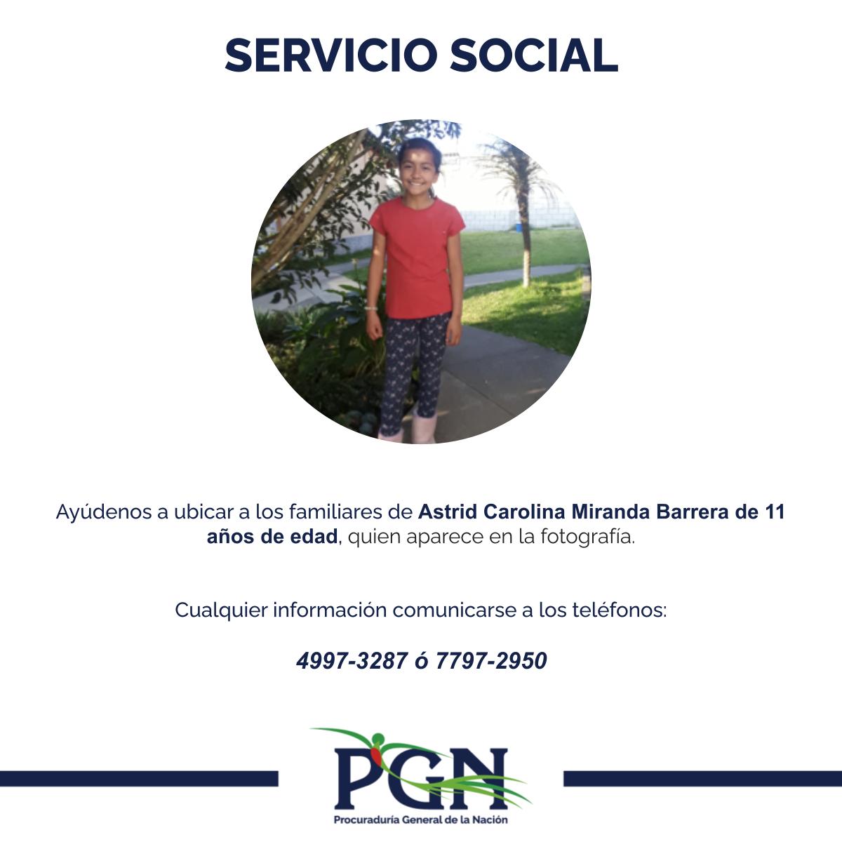 Ayúdenos a ubicar a los familiares de Astrid Carolina Miranda Barrera