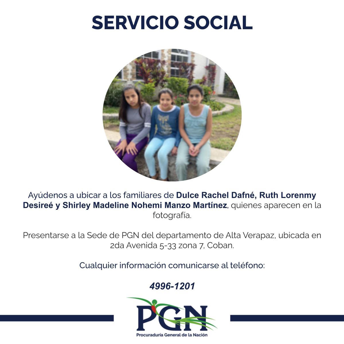 Ayúdenos a ubicar a los familiares de Dulce Rachel Dafné, Ruth Lorenmy Desireé y Shirley Madeline Nohemi Manzo Martínez