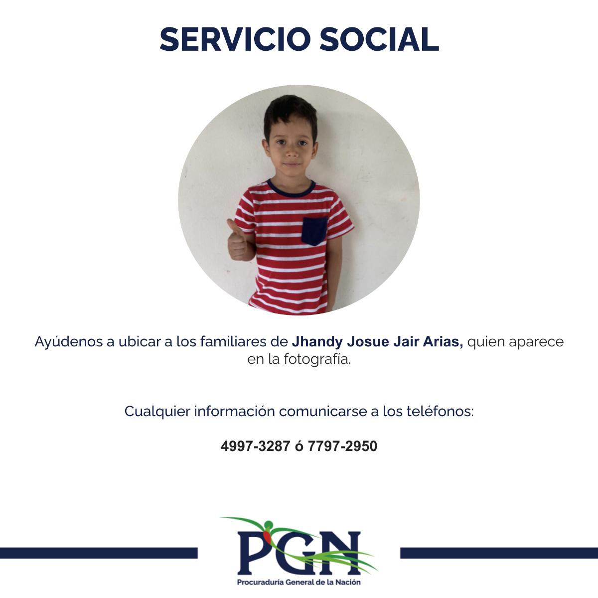 Ayúdenos a ubicar a los familiares de Jhandy Josue Jair Arias