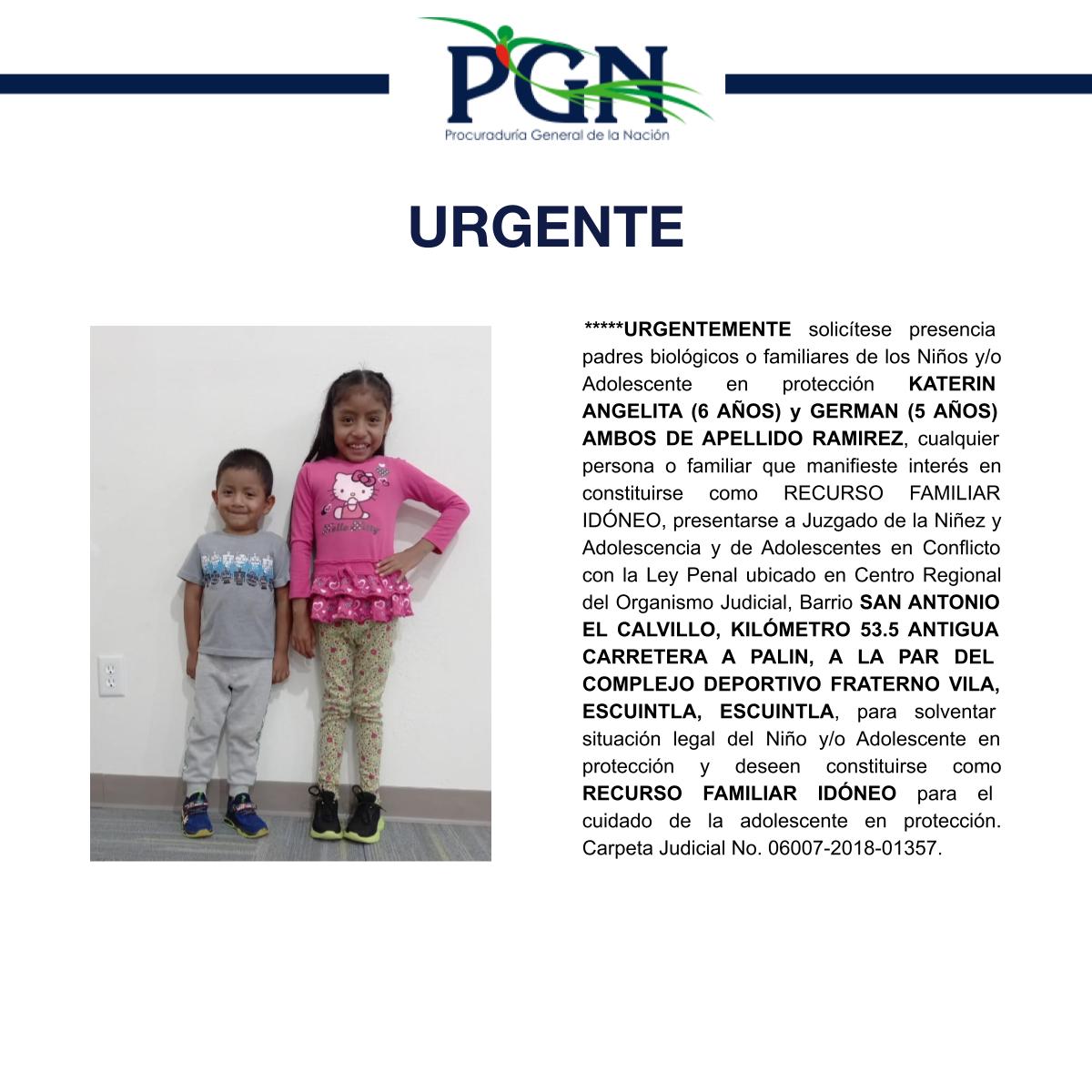 KATERIN ANGELITA (6 AÑOS) y GERMAN (5 AÑOS) AMBOS DE APELLIDO RAMIREZ,