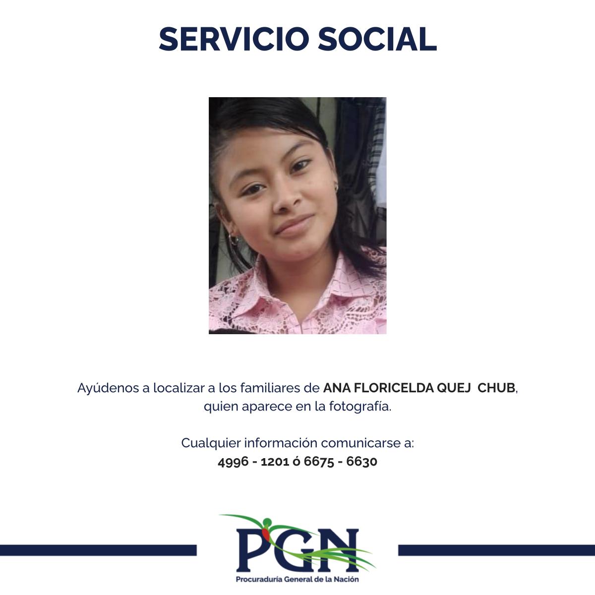 Ayúdenos a localizar a los familiares de ANA FLORICELDA QUEJ CHUB