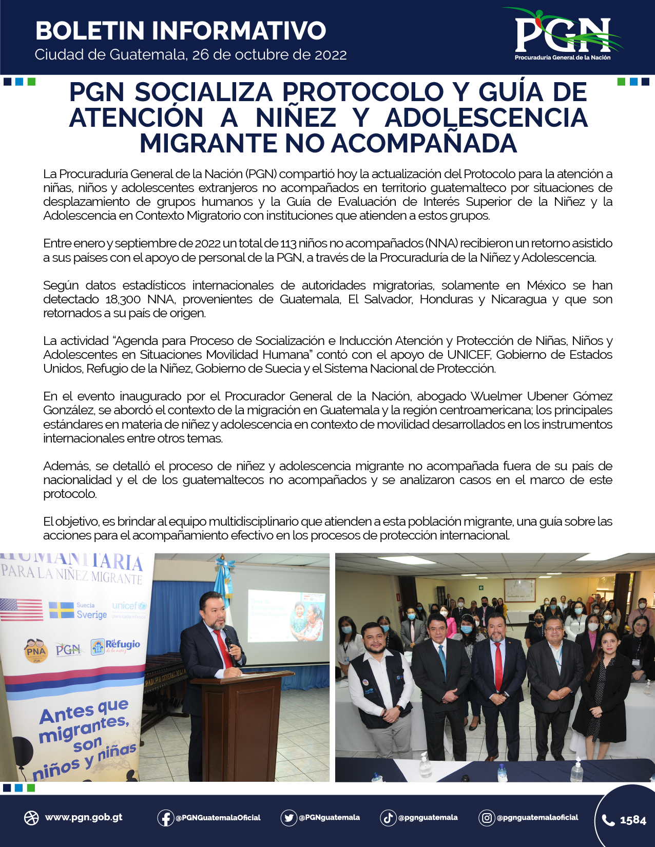 PGN SOCIALIZA PROTOCOLO Y GUÍA DE ATENCIÓN A NIÑEZ Y ADOLESCENCIA MIGRANTE NO ACOMPAÑADA